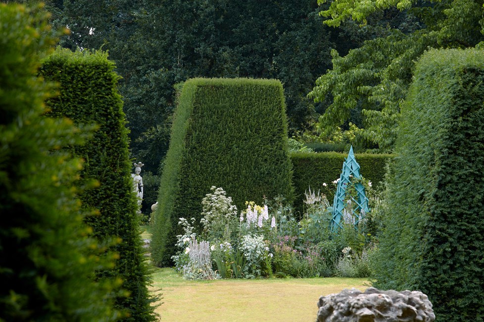 Designing the borders at the centre of the garden of Renishaw Hall was a rare commission for us, where we were concentrating solely on the planting plan. Using a very fresh palette of colour, we wanted to conjure a light frothiness to stand out against the wonderful velvety yew hedges which form the fabulous structure of the garden and the backdrop to the borders. The estate colour on the trelliswork obelisks which hold the roses and clematis, was another element to incorporate as we gradually refined our plant choices, blending the colours, forms and textures to create borders with combinations that delivered the atmosphere we wanted. We worked closely with the head gardener and the client on the final plan, ensuring that the plants would perform well for the site, and combine to form a really magical display for the long period over which the garden is open to the public.